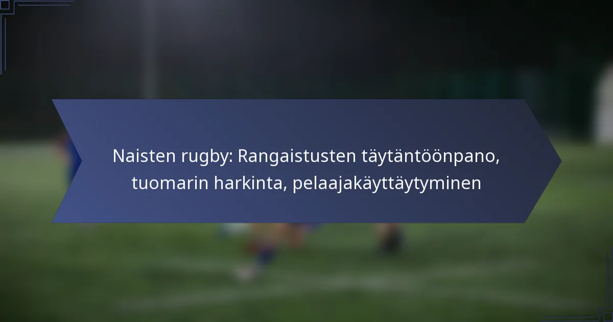 Naisrugbyssä rangaistusten täytäntöönpanon ymmärtäminen on olennaista pelin eheyden ja sujuvuuden ylläpitämiseksi. Tuomarit käyttävät harkintavaltaa tehdessään päätöksiä, jotka priorisoivat pelaajien turvallisuutta ja reilua peliä, samalla kun pelaajien käyttäytyminen vaikuttaa suoraan näiden rangaistusten täytäntöönpanoon. Urheilullinen käytös voi johtaa merkittäviin seurauksiin, jotka vaikuttavat paitsi pelin lopputulokseen myös joukkueen dynamiikkaan ja yksilöiden maineeseen.